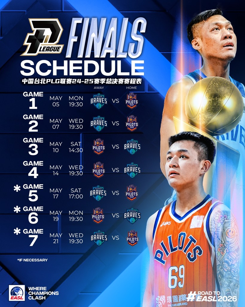 中国台北P. LEAGUE+联赛的桃园璞园领航猿和台北富邦勇士正式获得2025-2026赛季的东亚超级联赛(EASL,简称:东超)参赛资格。其中,桃园璞园领航猿是连续第2个赛季征战东超,台北富邦勇士则是2023-2024赛季东超主客场首赛季结束后的再次回归。