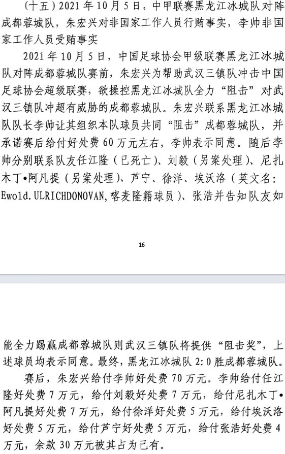 2021年10月5日,黑龙江冰城对阵成都蓉城的比赛前,在未向俱乐部请示,教练组汇报的情况下,我自作主张接受了所谓“武汉三镇”方面的“狙击奖金”,并在当场比赛结束后将其分给部分队友。当时,俱乐部长期欠薪,大家生活压力都比较大,我错误地认为这只是正常的“赢球激励”,不违背职业操守,不是假球,没有对不起谁,简单地以行业惯性判断这件事不违法,不违背职业操守,不是错误的事情。我已为自身法律意识淡薄,付出了巨大的代价,受到了法律的制裁,在那段失去自由的日子了,我无数次反思这件事情,我深刻认识到自己的错误。在此,请允许我向所有黑龙江、银川、呼和浩特、玉溪、沈阳的球迷,以及我的家人、朋友们道歉,让大家操心了,但是我李帅从小到大从未踢过一场假球,每一场比赛我都是全力以赴。我问心无愧。