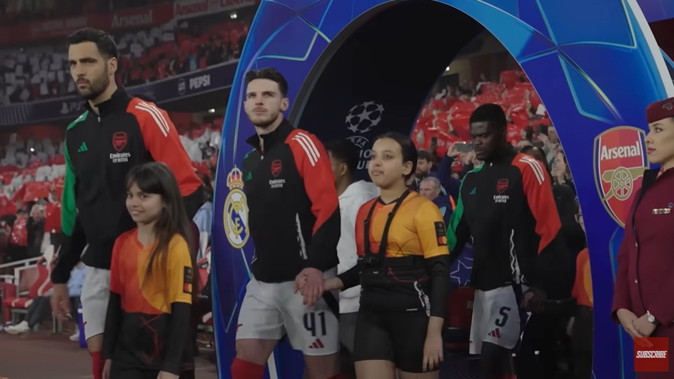 04月19日讯 阿森纳社区项目参与者贝瑟尔-梅库里亚在上周二度过了难忘之夜,她作为赖斯的牵手球童亮相欧冠四分之一决赛首回合对阵皇家马德里的比赛。